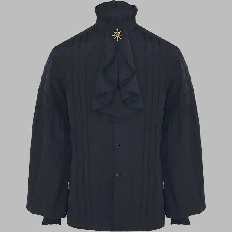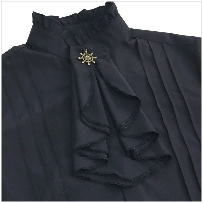 Zwarte Steampunk Overhemd met Hoge Kraag en Jabot