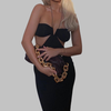 • Seksuele Details: Spaghettibandjes, een strapless halslijn en uitsnijdingen voegen een vleugje verleiding en originaliteit toe aan deze jurk, waardoor een harmonieuze balans tussen verleiding en elegantie ontstaat.